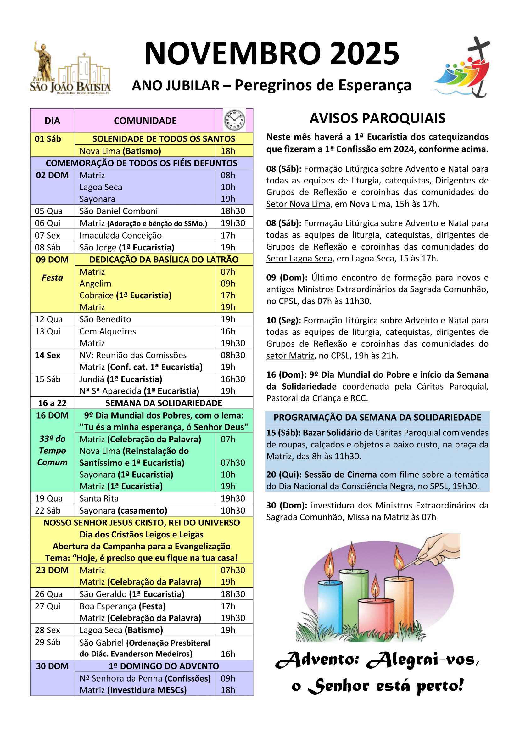 Programação do Tríduo e Festa em Honra ao Mártir São João Batista 2025