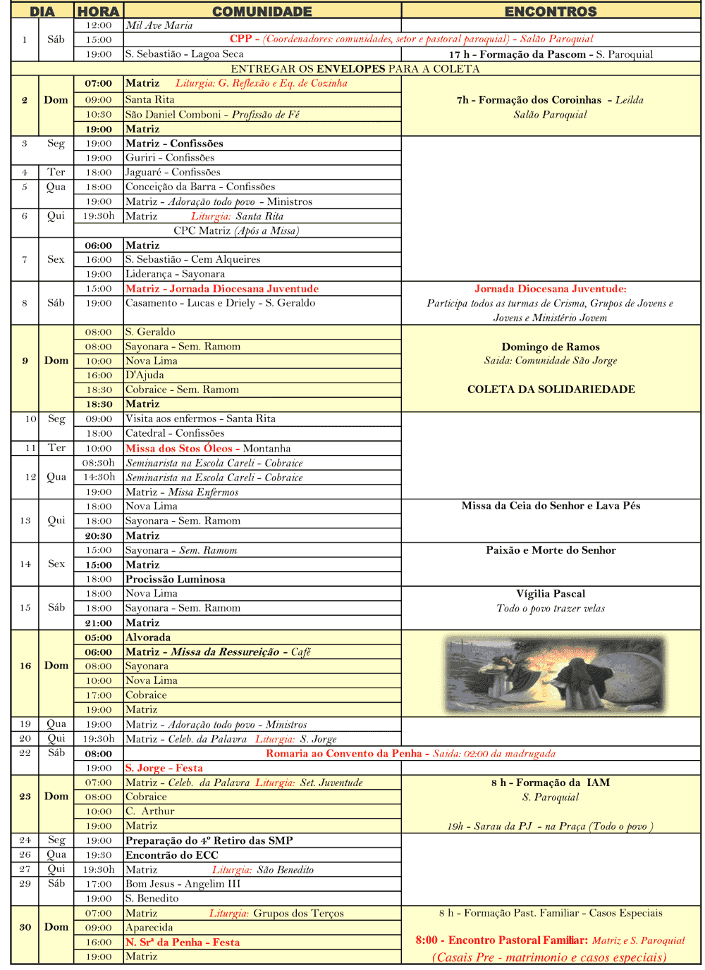 Programação Paroquial de Abril de 2017
