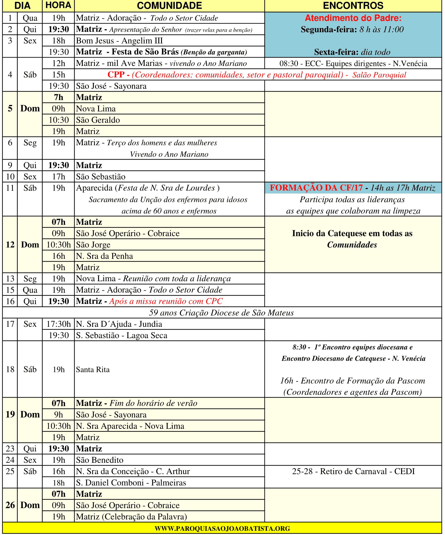 Programação do Tríduo e Festa em Honra ao Mártir São João Batista 2025