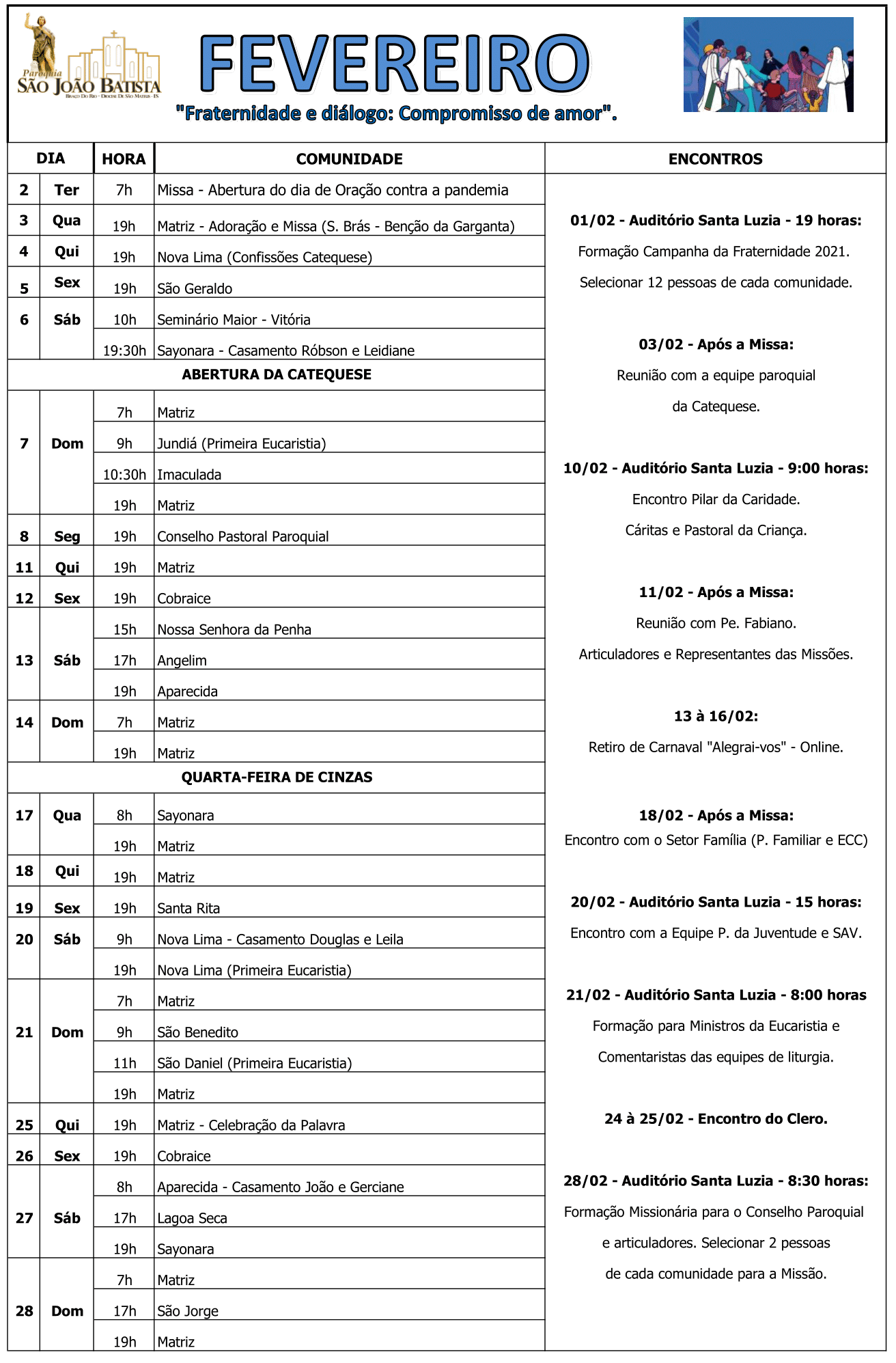 Programação do Tríduo e Festa em Honra ao Mártir São João Batista 2025