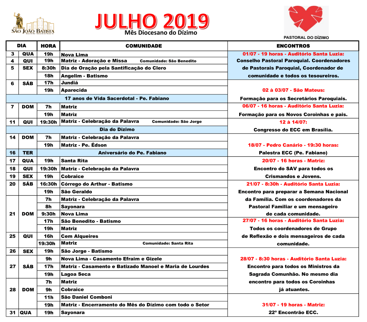Programação do Tríduo e Festa em Honra ao Mártir São João Batista 2025