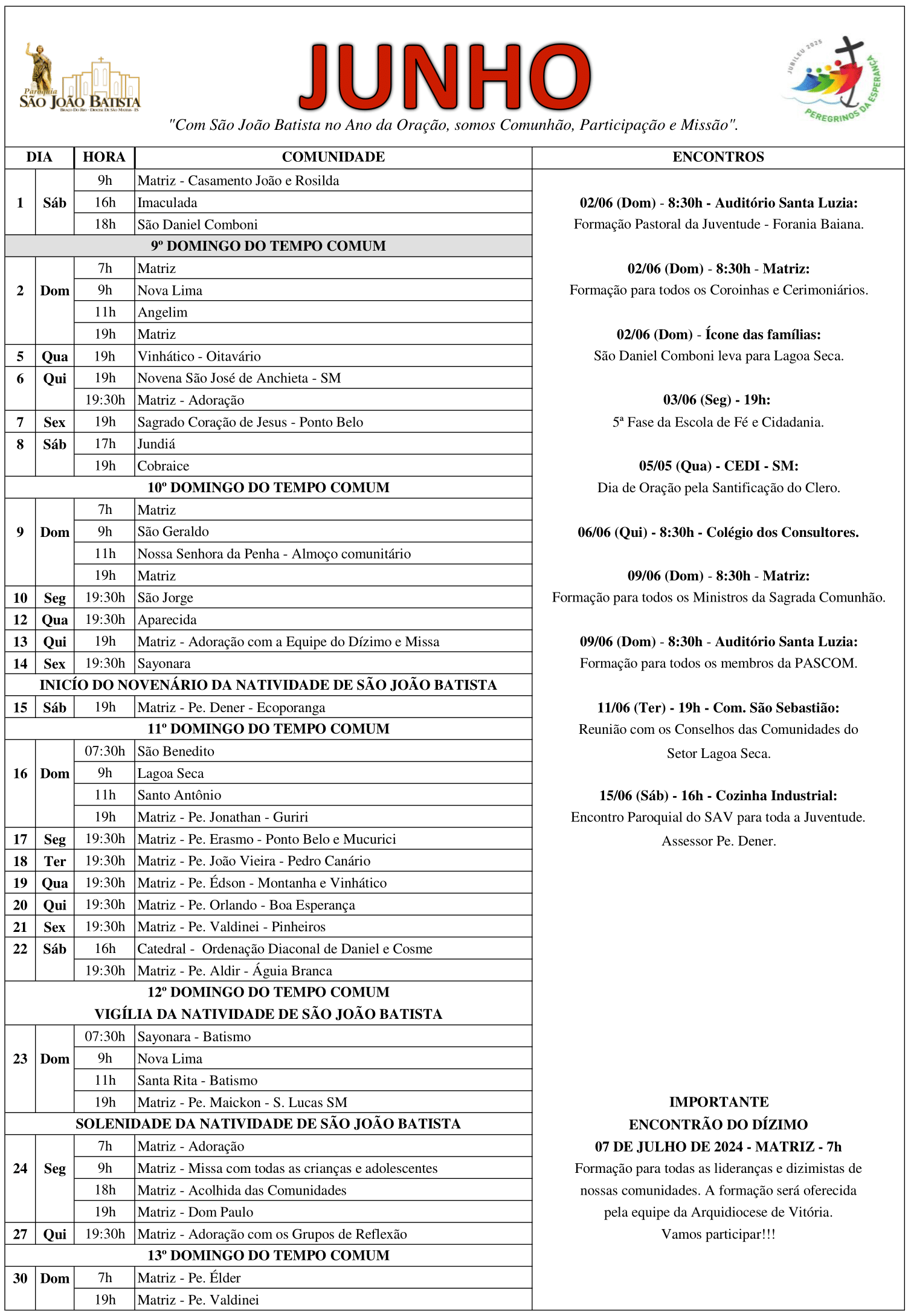 Programação do Tríduo e Festa em Honra ao Mártir São João Batista 2025