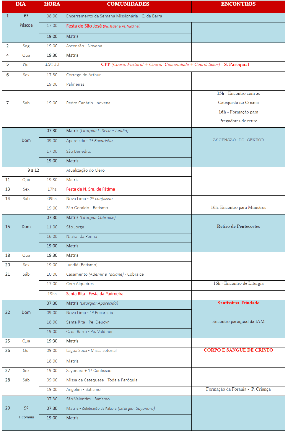 Programação Paroquial Maio 2016