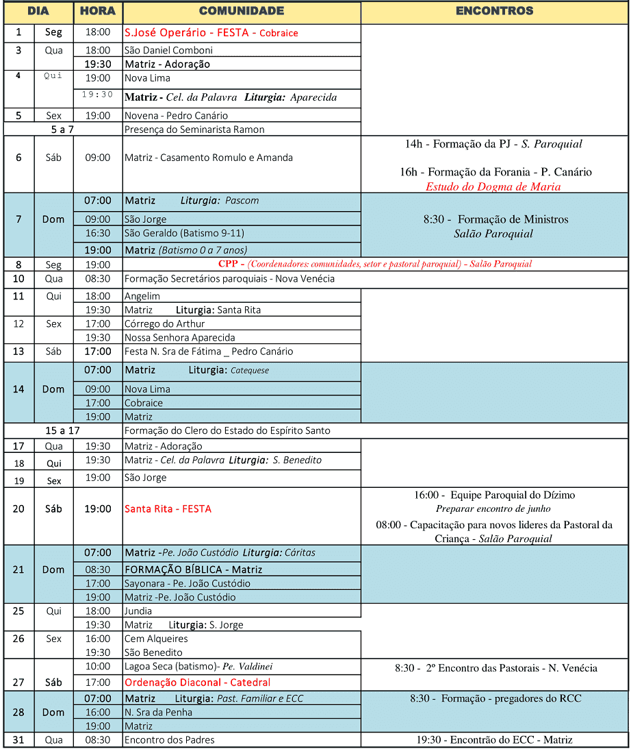 Programação Paroquial de Maio de 2017