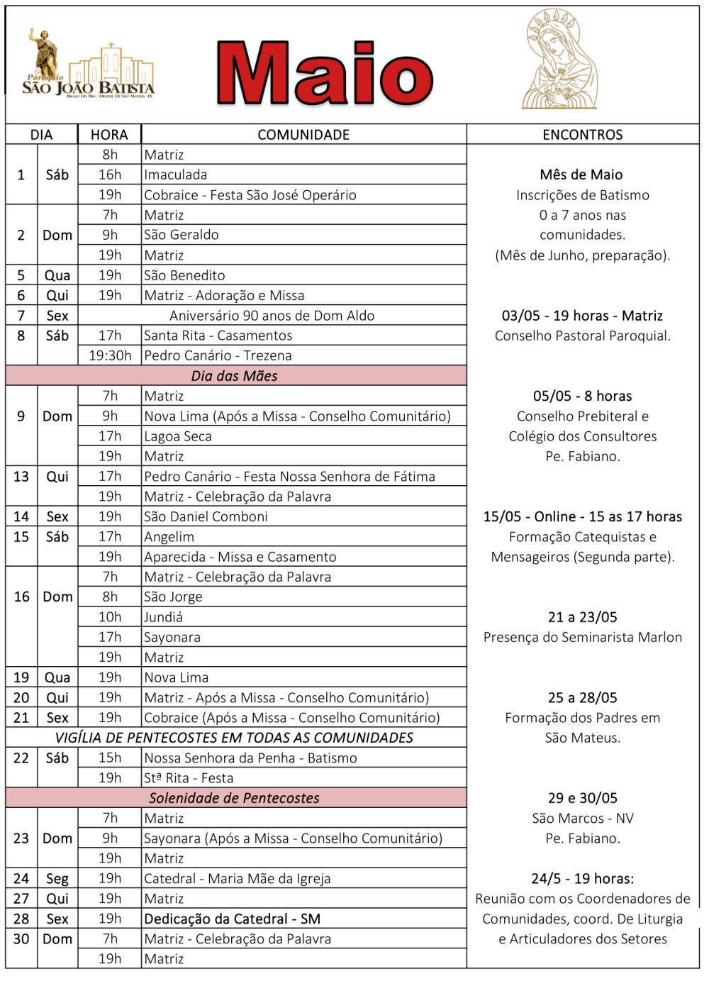 Programação do Tríduo e Festa em Honra ao Mártir São João Batista 2025