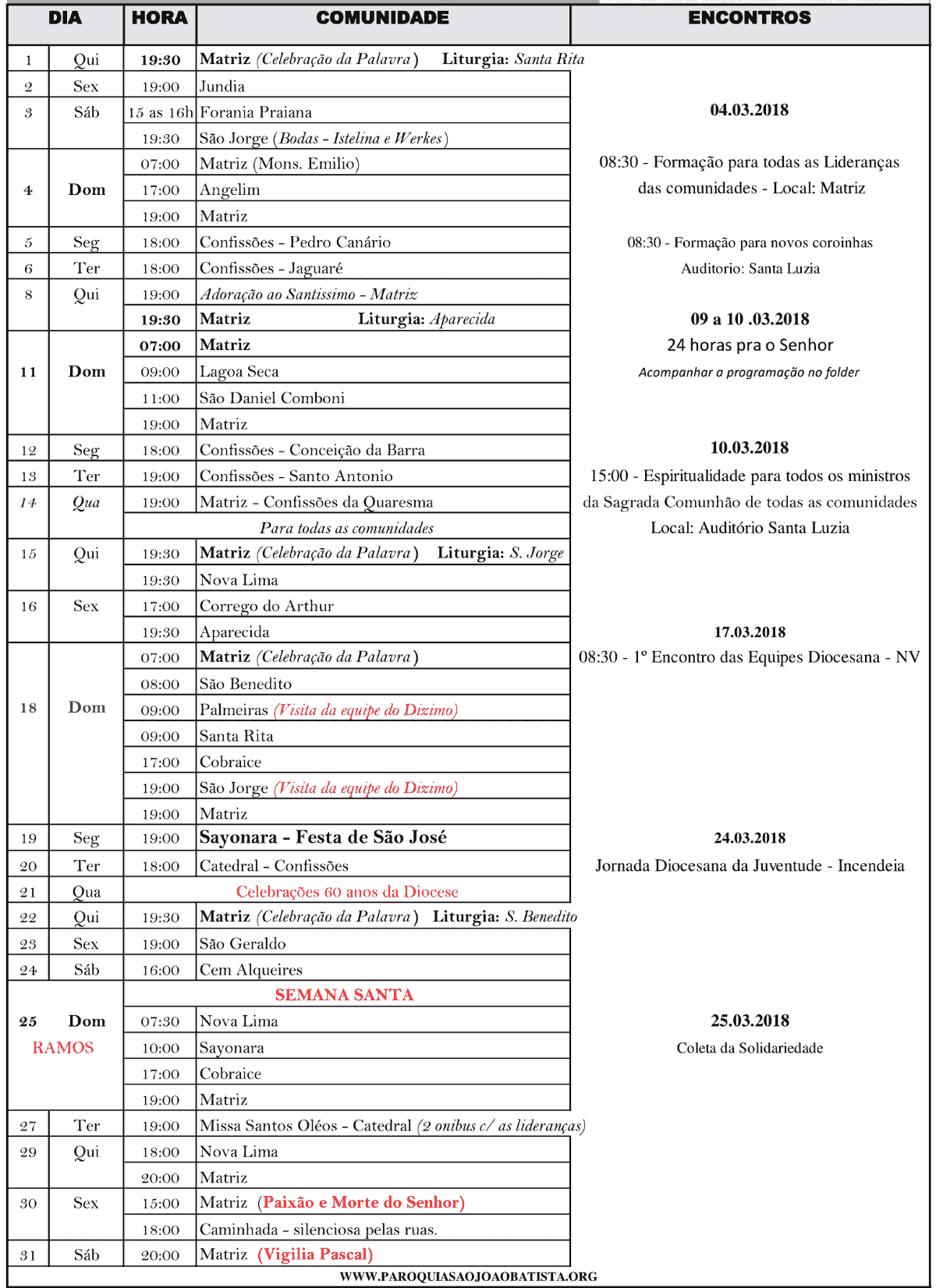 Programação do Tríduo e Festa em Honra ao Mártir São João Batista 2025