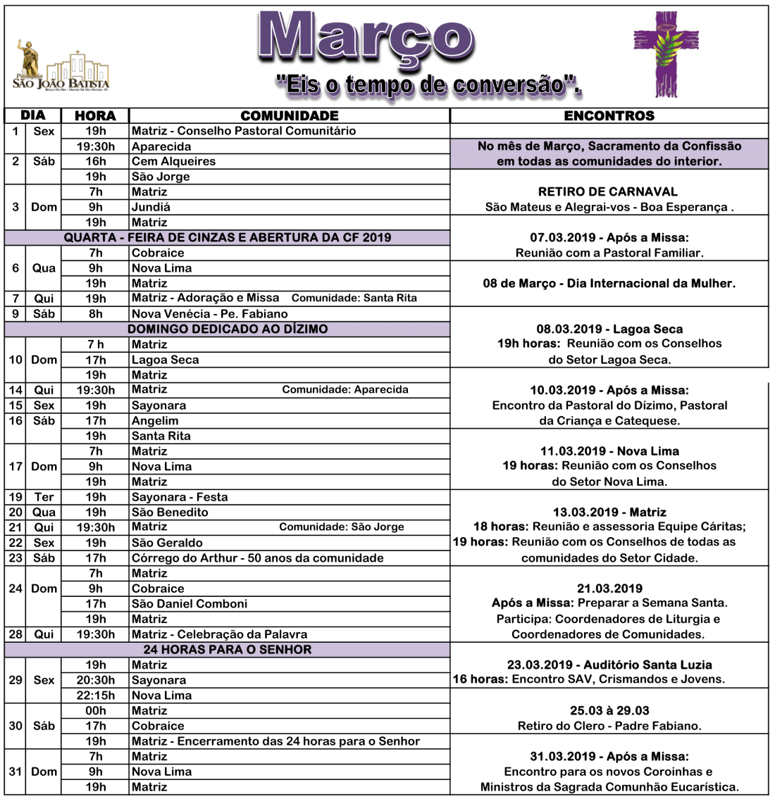 Programação do Tríduo e Festa em Honra ao Mártir São João Batista 2025