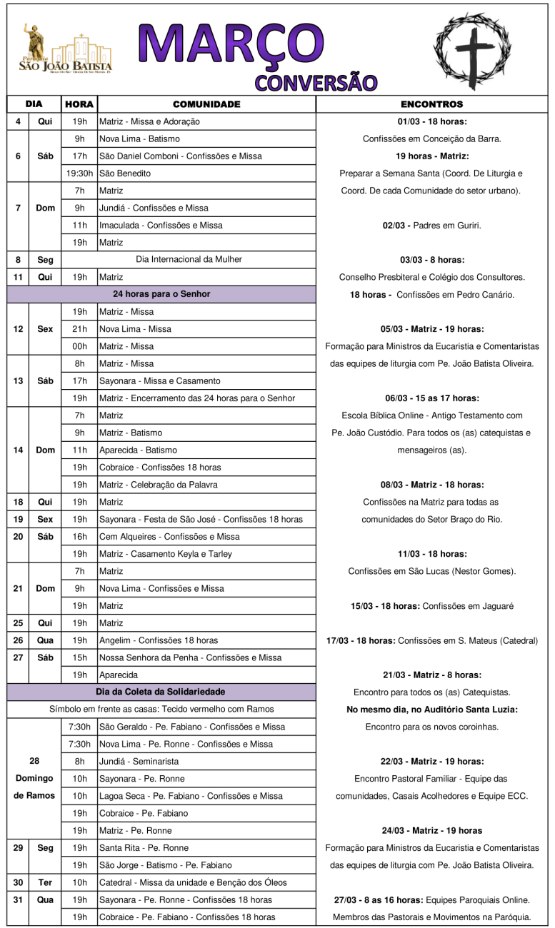 Programação do Tríduo e Festa em Honra ao Mártir São João Batista 2025
