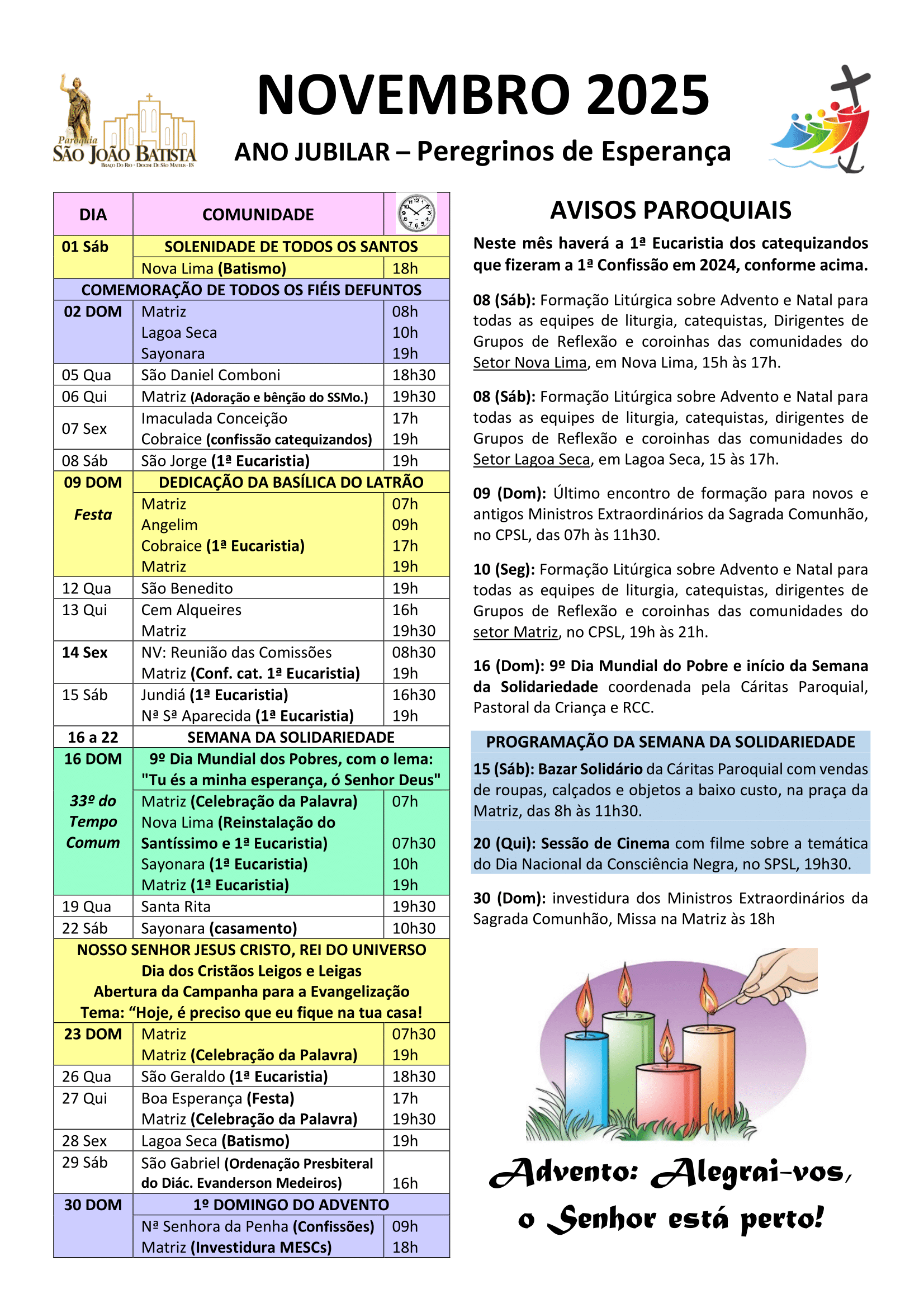Programação Paroquial do Mês de Novembro 2025