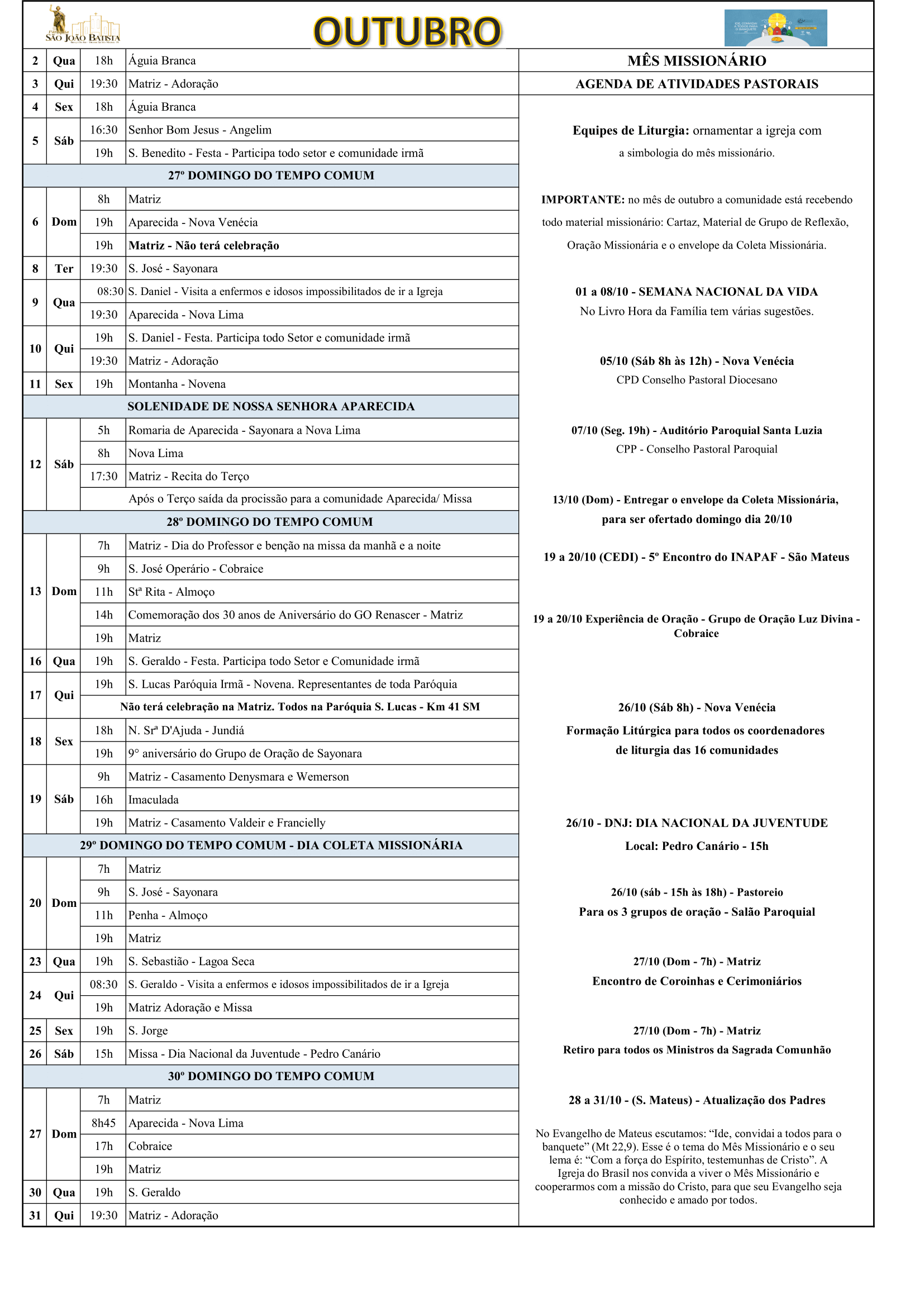 Programação do Tríduo e Festa em Honra ao Mártir São João Batista 2025
