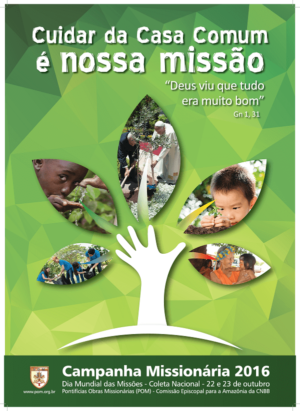 “Cuidar da Casa Comum é nossa missão”. Este é o tema escolhido para a Campanha Missionária em 2016. O lema é extraído da narrativa da criação no livro do Gênesis: “Deus viu que tudo era muito bom” (Gn 1, 31). O projeto do Criador é maravilho, mas encontra-se ameaçado! A preocupação pela ecologia parte de dois gritos: o grito dos pobres que mais sofrem, e o grito da Terra que geme pela exploração. A temática retoma a Campanha da Fraternidade Ecumênica deste ano e amplia a missão de cuidar da vida em todo o planeta.Em sua Encíclica Laudato si’, o papa Francisco adverte que “a existência humana se baseia sobre três relações intimamente ligadas: as relações com Deus, com o próximo e com a terra” (LS 66). E lança uma pergunta: “Que tipo de mundo queremos deixar a quem nos suceder, às crianças que estão crescendo?” (LS 160). Em nossa Casa Comum, tudo está interligado, unido por laços invisíveis, como uma única família universal. E nós recebemos de Deus a missão de cuidar dessas relações. Isso tem a ver com a missão da Igreja. Queremos fazer do cuidado do planeta a nossa missão até os confins do mundo. Diante da crise socioambiental, nem todos temos de ser especialistas e saber tudo, mas temos o dever de mudar nossos hábitos e apoiar ações práticas.