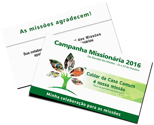 O envelope deve ser utilizado exclusivamente para a Coleta do Dia Mundial das Missões, feita nas celebrações do penúltimo final de semana de outubro (este ano, dias 22 e 23). As ofertas devem ser integralmente enviadas às Pontifícias Obras Missionárias (POM) que as repassam ao Fundo Universal de Solidariedade para apoiar projetos em todo o mundo.
