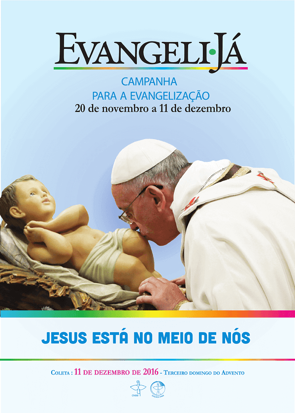 A Campanha para a Evangelização é realizada, todos os anos, no tempo do Advento. Nesse período litúrgico, a Igreja se prepara para a Celebração do Mistério da Encarnação. O dinamismo evangelizador nasce da experiência que a comunidade de fé faz ao contemplar, no Menino Jesus, o EMANUEL, o Deus conosco. Este gesto está visível no cartaz da CE 2016. Nele, o Papa Francisco nos convida a enxergar além do que vemos, percebendo as necessidades materiais e espirituais dos filhos e das filhas da Igreja. Isso, contudo, só será possível se nos abrirmos à compreensão do “Emanuel” anunciado pelo evangelista Mateus.