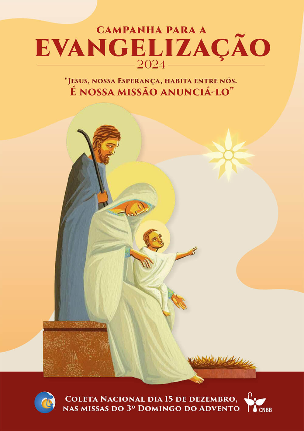 A Campanha para a Evangelização 2024 nos prepara para a abertura do Jubileu da Encarnação de 2025, com o tema “Jesus, nossa Esperança, habita entre nós. É nossa missão anunciá-lo”.