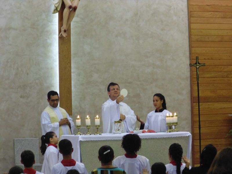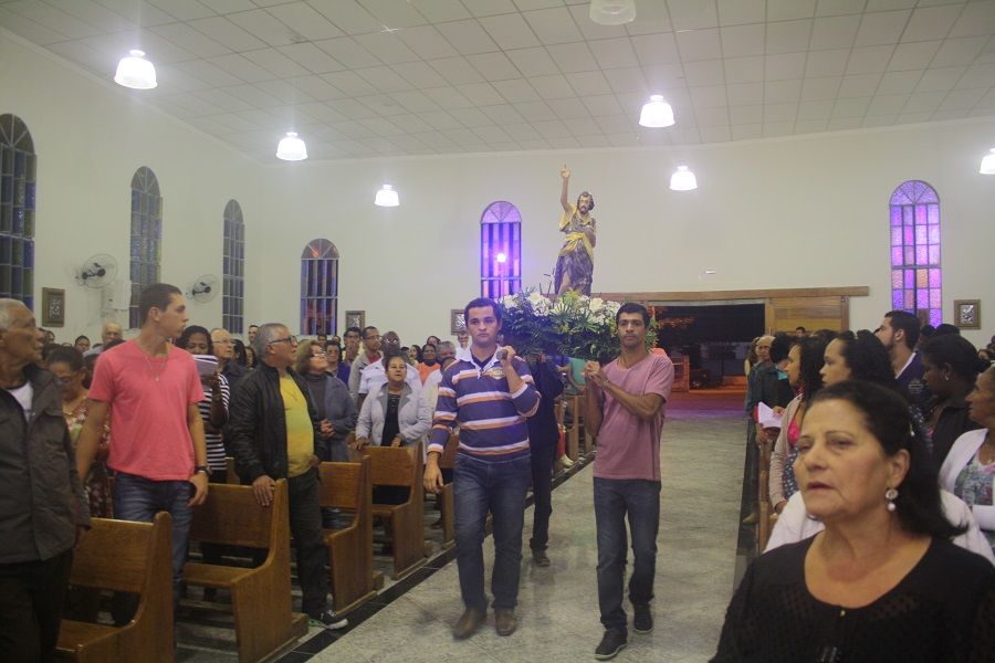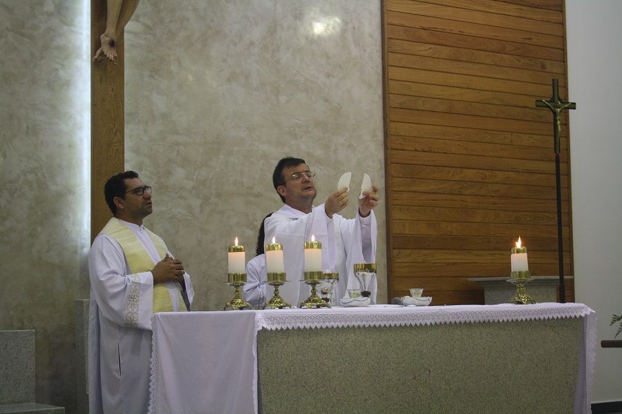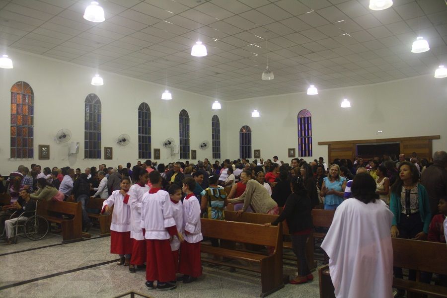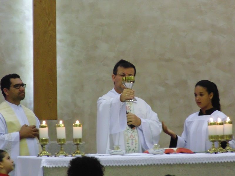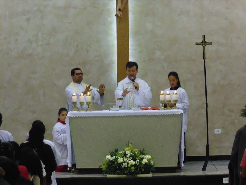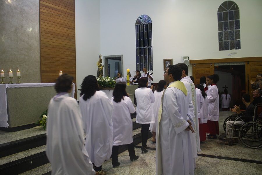 Essa primeira Missa da Novena foi presidida pelo Pe. Aldir Roque Lóss, velho conhecido da Paróquia e um dos primeiros idealizadores desse sonho. Concelebrou esse mistério o Pe. Valdinei Soares dos Santos, juntamente com as comunidades do Setor Lagoa Seca: Nossa Senhora D’Ajuda (Assentamento Jundiá), São Sebastião (Lagoa Seca), São Daniel Comboni (Palmeiras) e Nossa Senhora da Conceição (Córrego do Arthur).