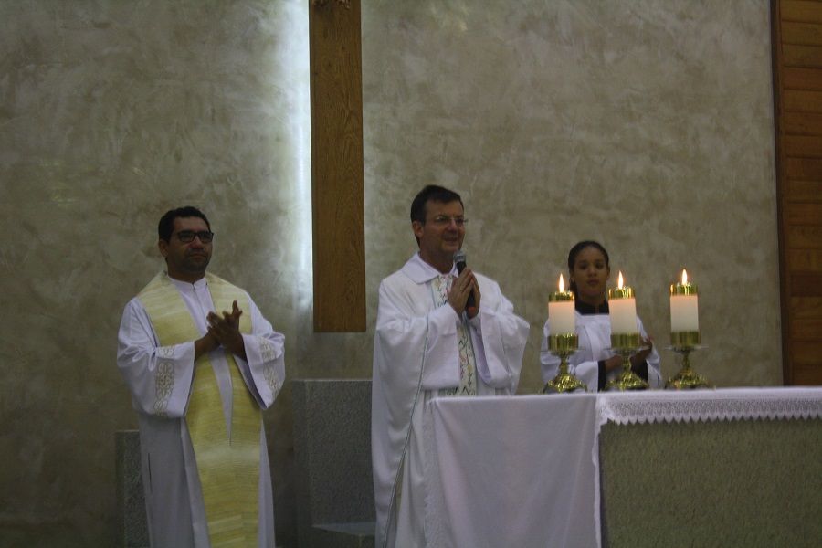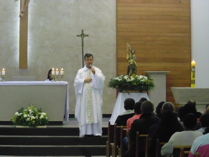 O Pe. Aldir em sua homilia elogiou o trabalho do Pe. Valdinei e toda a comunidade pela reforma e desenvolvimento da Paróquia. Sentiu-se envaidecido e imensamente feliz por celebrar a abertura da Novena, realizando um pequeno resgate do período em que trabalhou conosco.
