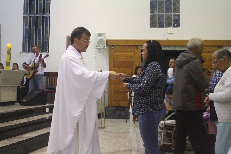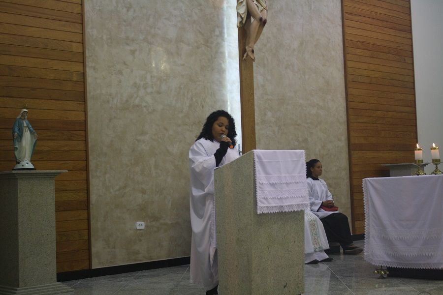 Como de costume, aproveitou para fazer uma excelente catequese bíblica a partir das leituras. Nesse dia em especial rezamos pelos desempregados que buscam a conquista da dignidade através do trabalho.