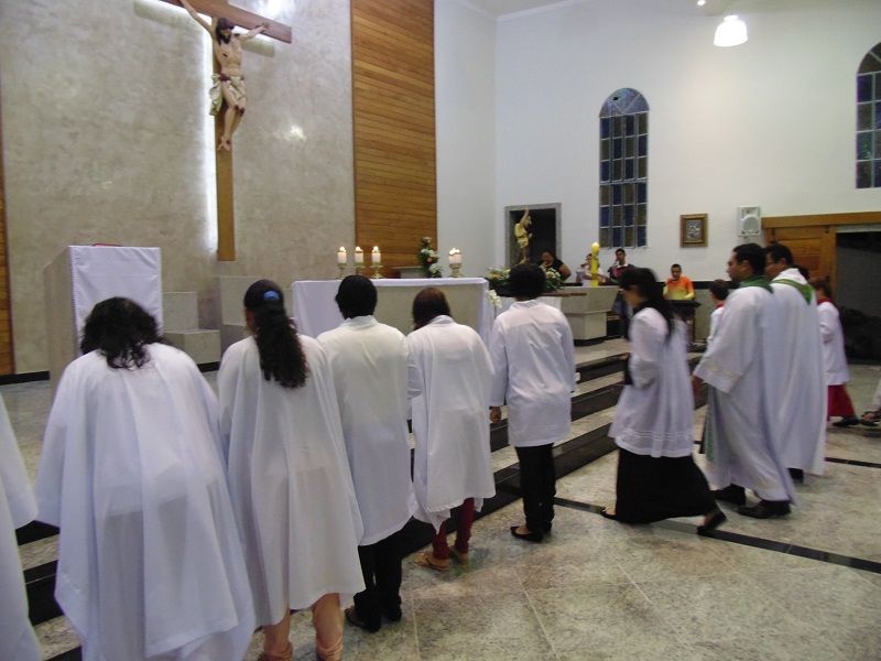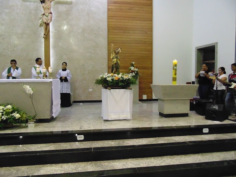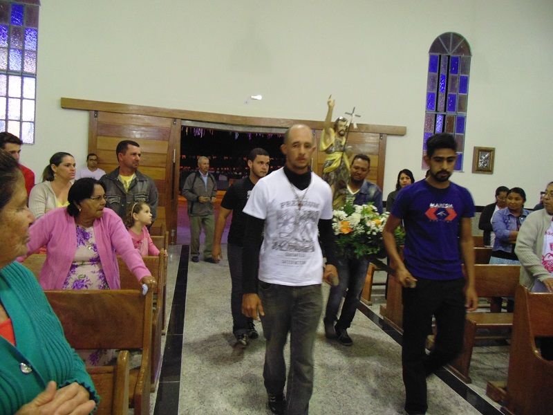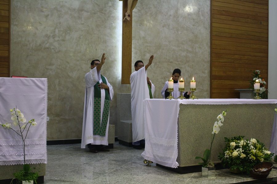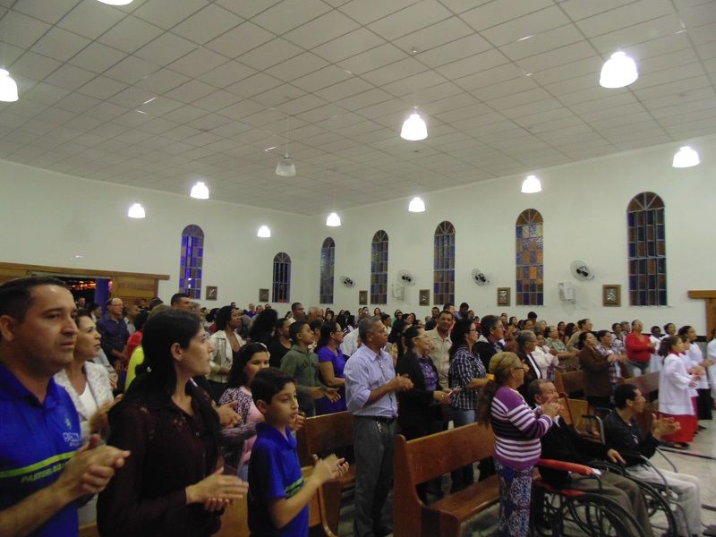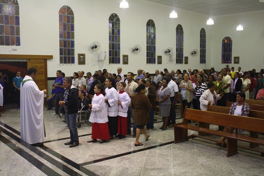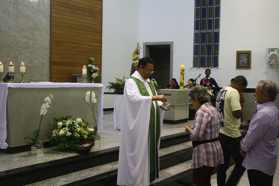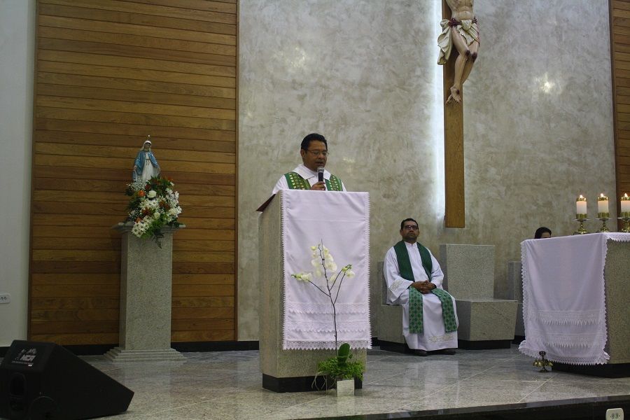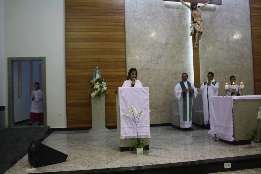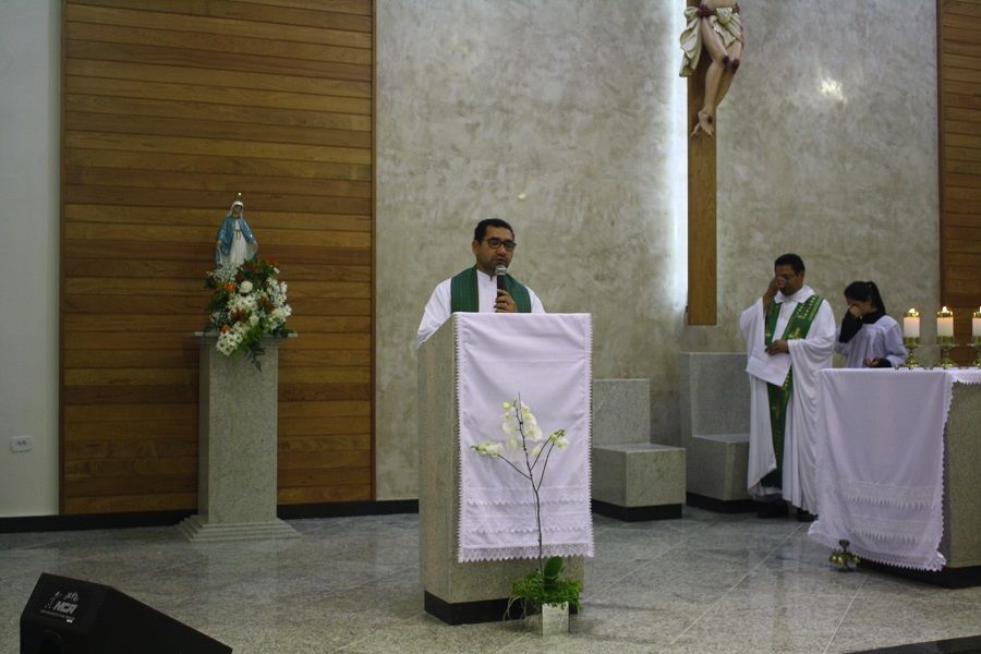 Nesse dia rezamos especialmente pelas nossas famílias. O Pe. Deucy utilizou alguns momentos litúrgicos para que as famílias que ali estavam pudessem se reunir em pequenas células de oração – foi um dos pontos fortes e tocantes, e pode sinalizar o quanto nossas famílias tem se dispersado e distanciado, até mesmo dentro da própria igreja. Em sua homilia ressaltou a necessidade de oração, a verdadeira oração que deve brotar da alma. Ratificou que uma oração ou um diálogo com Deus, necessariamente não precisa ser composta por palavras, mas que numa simples e sincera contemplação podemos falar e escutar a Deus – o silêncio se encarrega da comunicação.