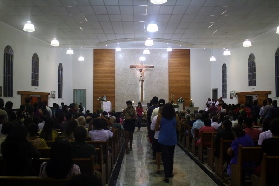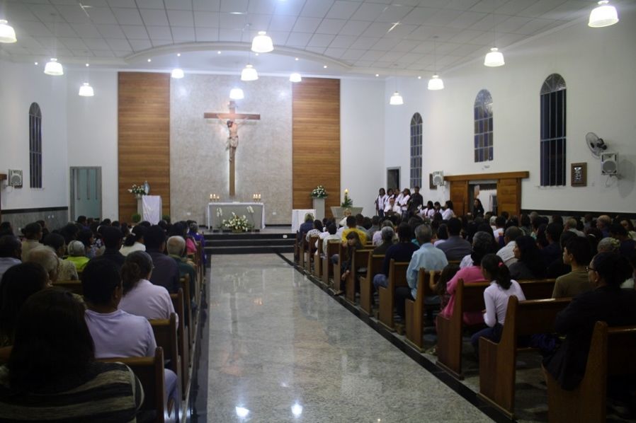 A celebração iniciou num clima de mistério, tendo a participação de um grupo de jovens meninas animando através dos cantos.
