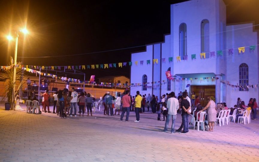 Após a benção final, toda a assembleia dirigiu-se ao pátio da Igreja para continuar com as festividades, onde também ocorreu a 1ª etapa do Show de Calouros.