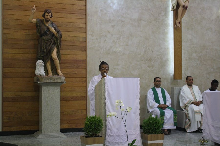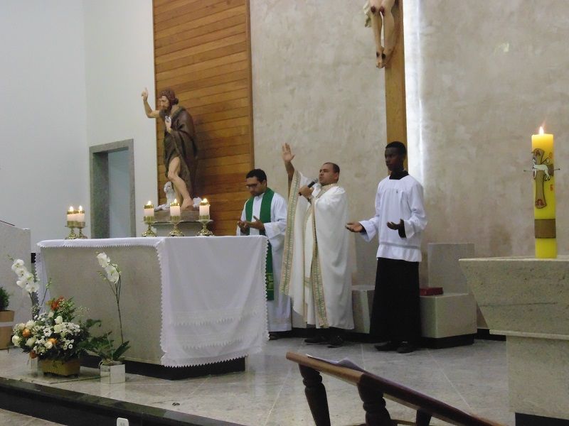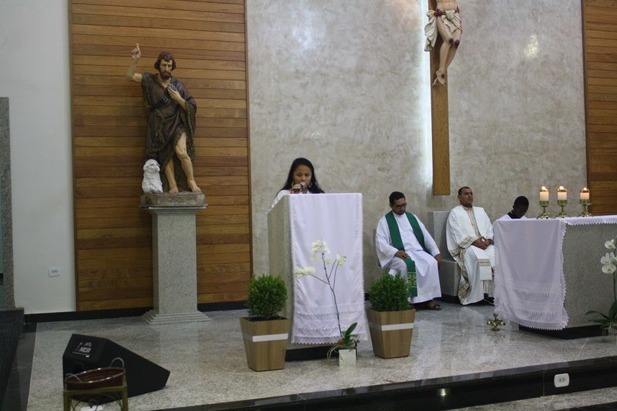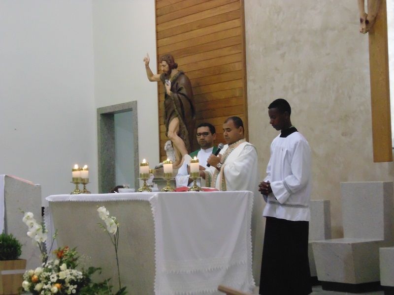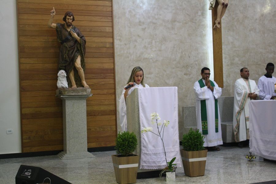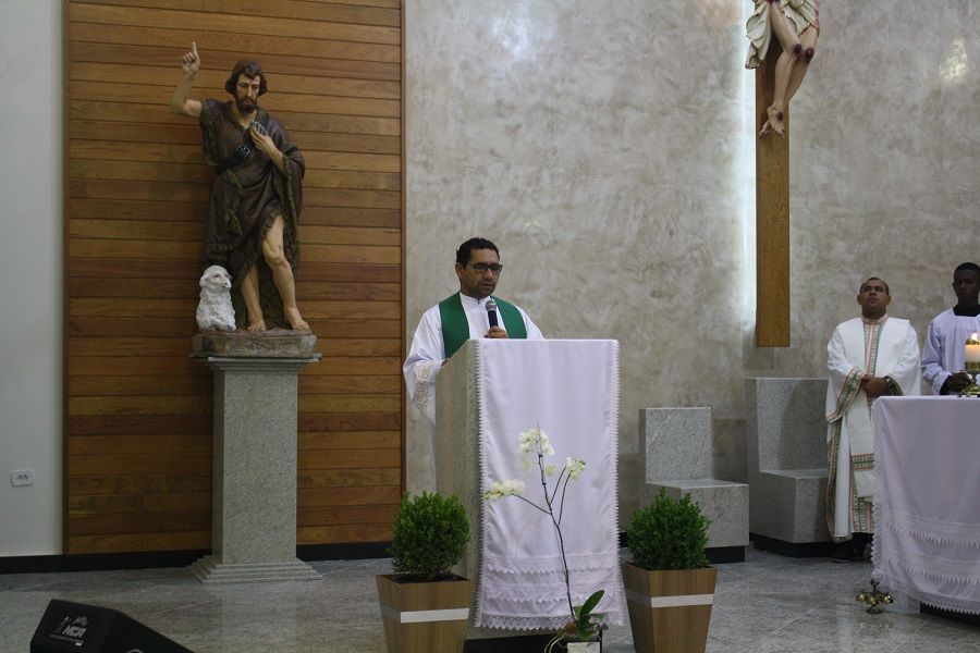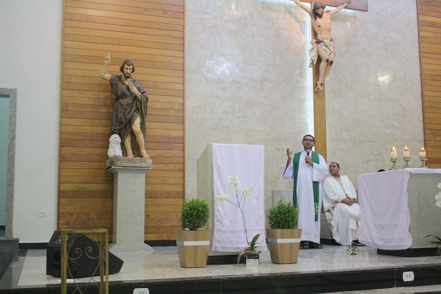 Desde o início da celebração tivemos a grata surpresa da chegada da nova imagem de São João Batista, bela, imponente, adequada ao nosso espaço celebrativo.