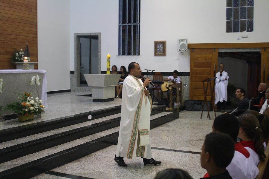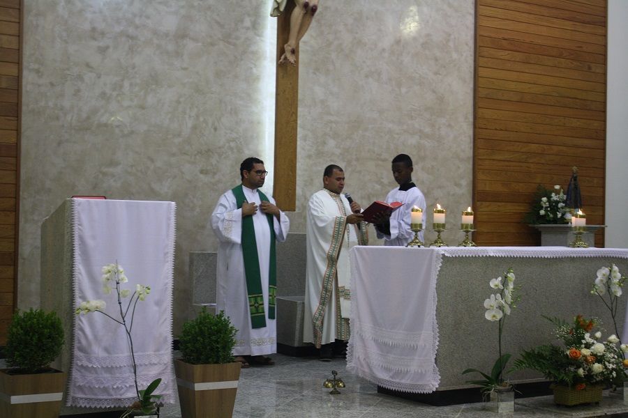 Iniciando a homilia o Pe. Gilday coloca nossa Igreja como a Casa Sagrada onde escutamos a Palavra de Deus, por isso ela deve ser um espaço bem cuidado, pois tudo brota da Palavra.