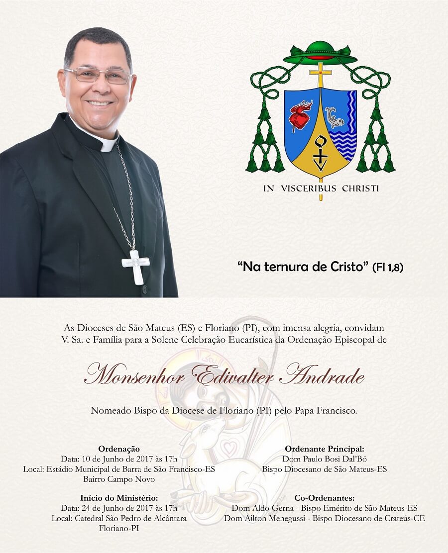 Desde o dia 29 de Março, as dioceses de São Mateus (ES) e Floriano (PI) se encontram em festa com a nomeação do monsenhor Edivalter Andrade como bispo de Floriano.