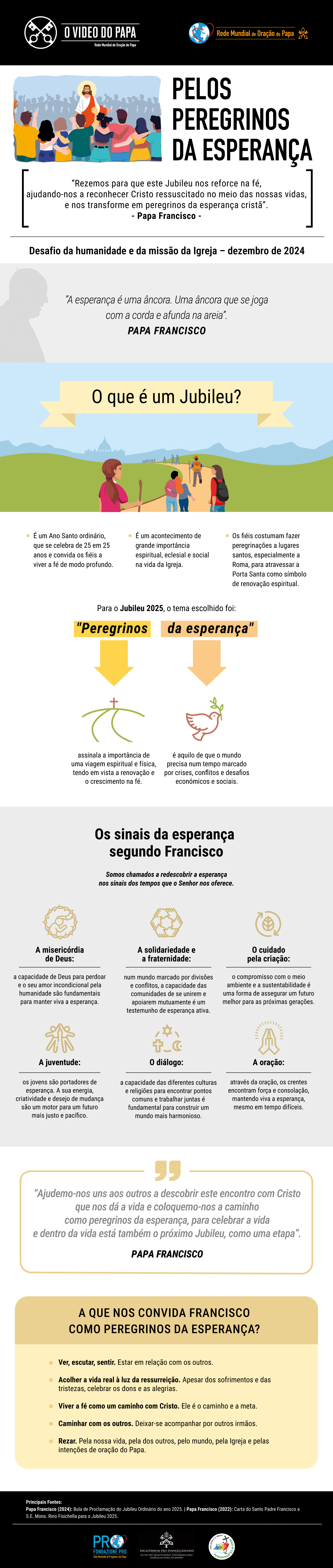O Jubileu 2025, cujo tema é "Peregrinos da esperança", será um tempo de celebração e de profunda reflexão. O também chamado "Ano Santo" não é somente uma etapa no caminho da fé, mas é um chamado a reconhecer a Cristo no dia a dia.