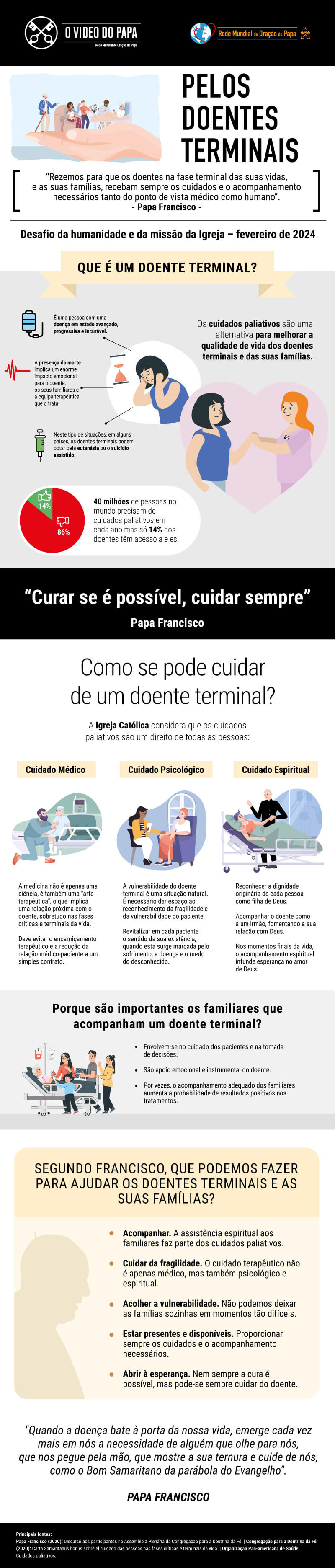 Rezemos para que os doentes terminais e suas famílias recebam sempre os cuidados e o acompanhamento necessários, tanto do ponto de vista médico quanto humano.
