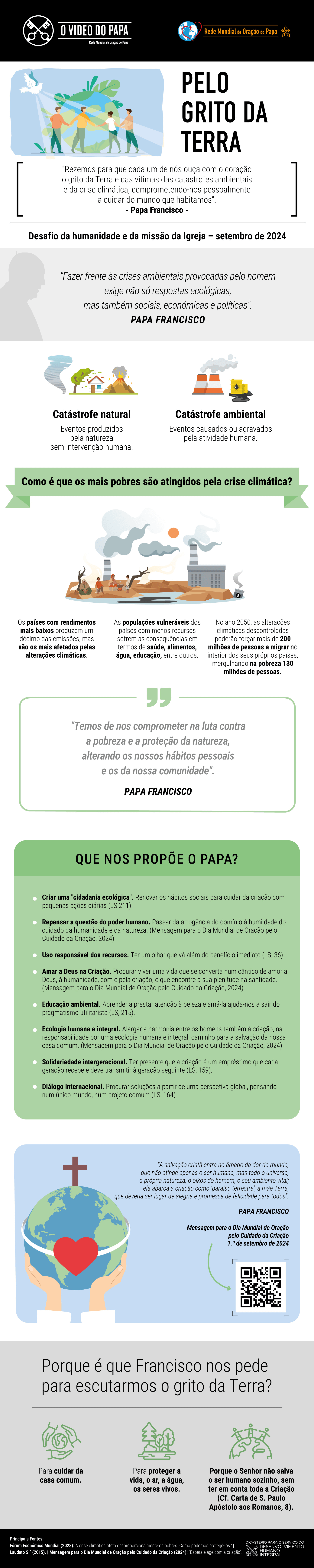 “Rezemos para que cada um de nós ouça com o coração o grito da Terra e das vítimas das catástrofes ambientais e das alterações climáticas, comprometendo-nos pessoalmente a cuidar do mundo que habitamos.”