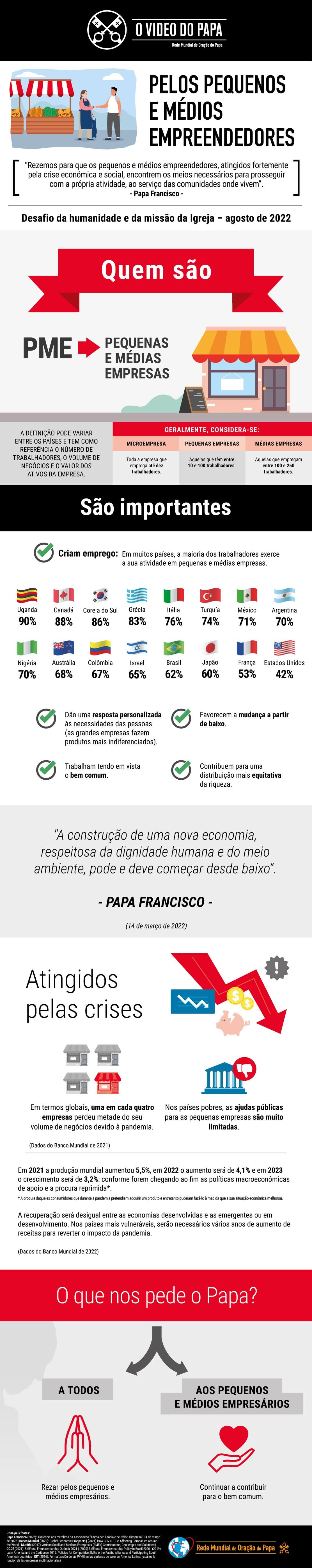O Pe. Frédéric Fornos S.J., Diretor Internacional da Rede Mundial de Oração do Papa, comentou sobre esta intenção: “As crises que estamos vivendo são – como diz o Papa – um ‘momento Noé’, uma oportunidade para construir algo diferente. Neste sentido, os pequenos e médios empresários são de grande importância, a sua força criativa, a sua capacidade de fornecer soluções a partir de baixo. Sem eles não teria sido possível atravessar a crise da pandemia de Covid, e eles continuam mais necessários do que nunca. É por isso que é importante rezar por eles”.