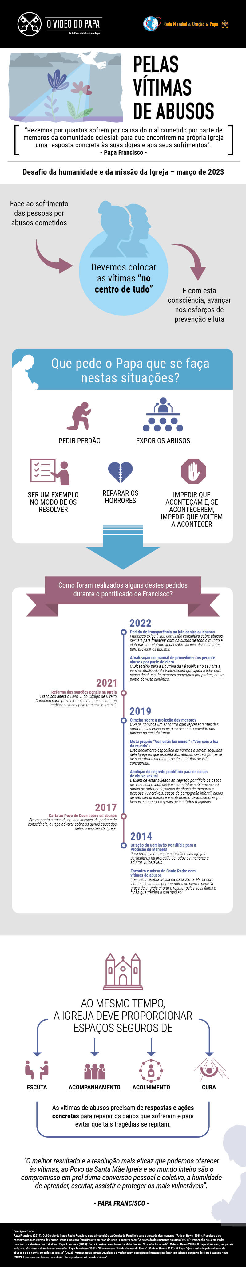 A mensagem deste mês é dirigida a todos aqueles que foram vítimas de abuso. "Diante dos abusos, especialmente aqueles cometidos por membros da Igreja, não basta pedir perdão", diz o Papa.