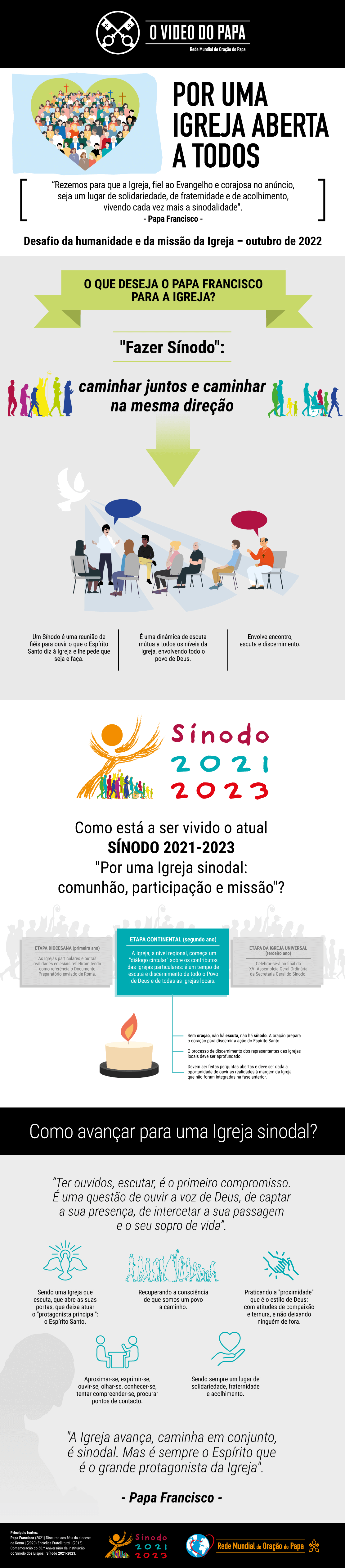 O Santo Padre chama a atenção para o caminho sinodal que começou em 2021 e terminará em 2023. Após a etapa inicial em que as Igrejas particulares, as Conferências Episcopais e outras realidades eclesiais refletiram sobre o Documento Preparatório, é inaugurada a etapa continental, cuja ênfase é a escuta, o discernimento e o diálogo no âmbito regional, com base nas contribuições feitas pelas Igrejas particulares.