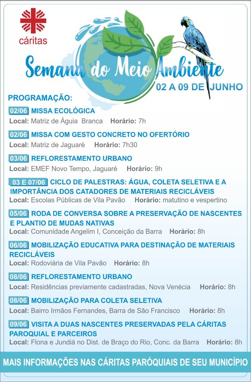 Programação da Semana do Meio Ambiente na Diocese de São Mateus 2019