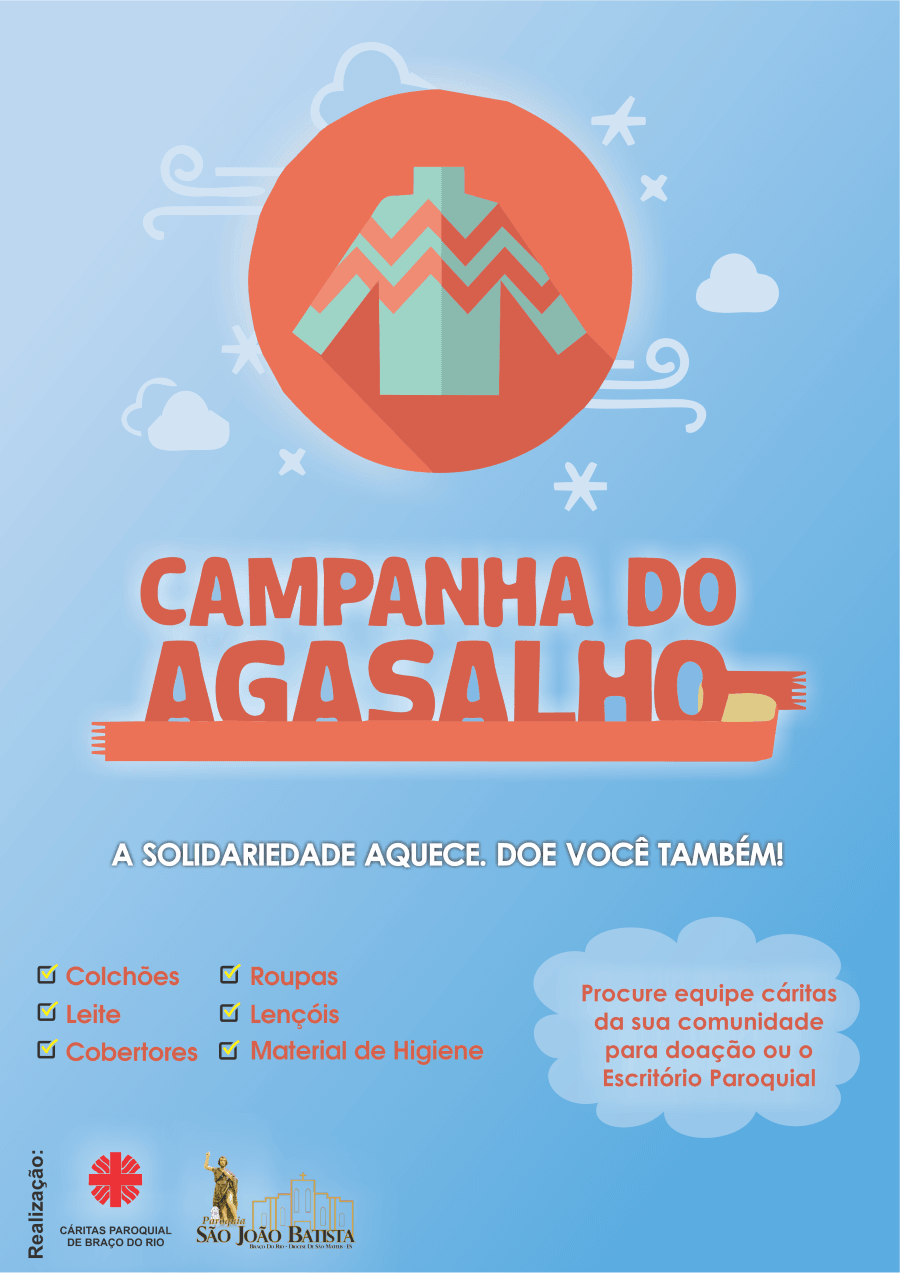 A Cáritas Paroquial de Braço do Rio está promovendo a CAMPANHA DO AGASALHO.