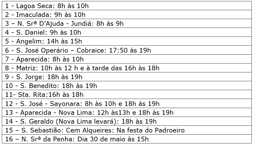 - Após esta Missa no horário apresentado, dirija-se o fiel à comunidade para receber a Eucaristia, observando as orientações: