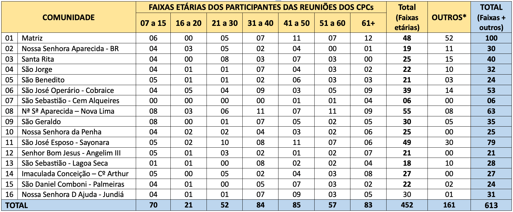 - Dados levantados a partir das reuniões dos CPCs com o Padre em fevereiro de 2025.