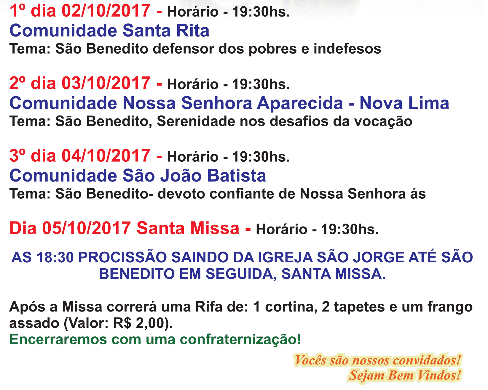 Programação da Festa da Comunidade São Benedito 2017