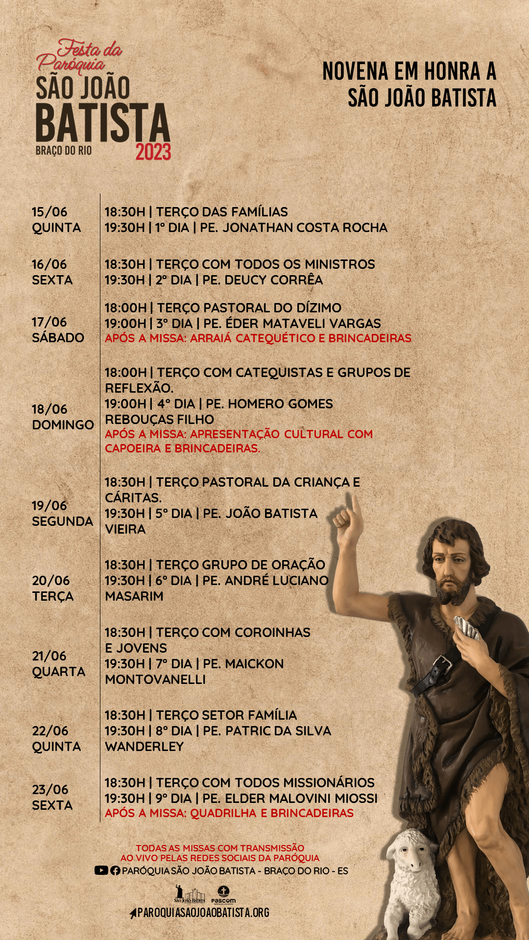 Programação da Festa da Paróquia São João Batista 2023