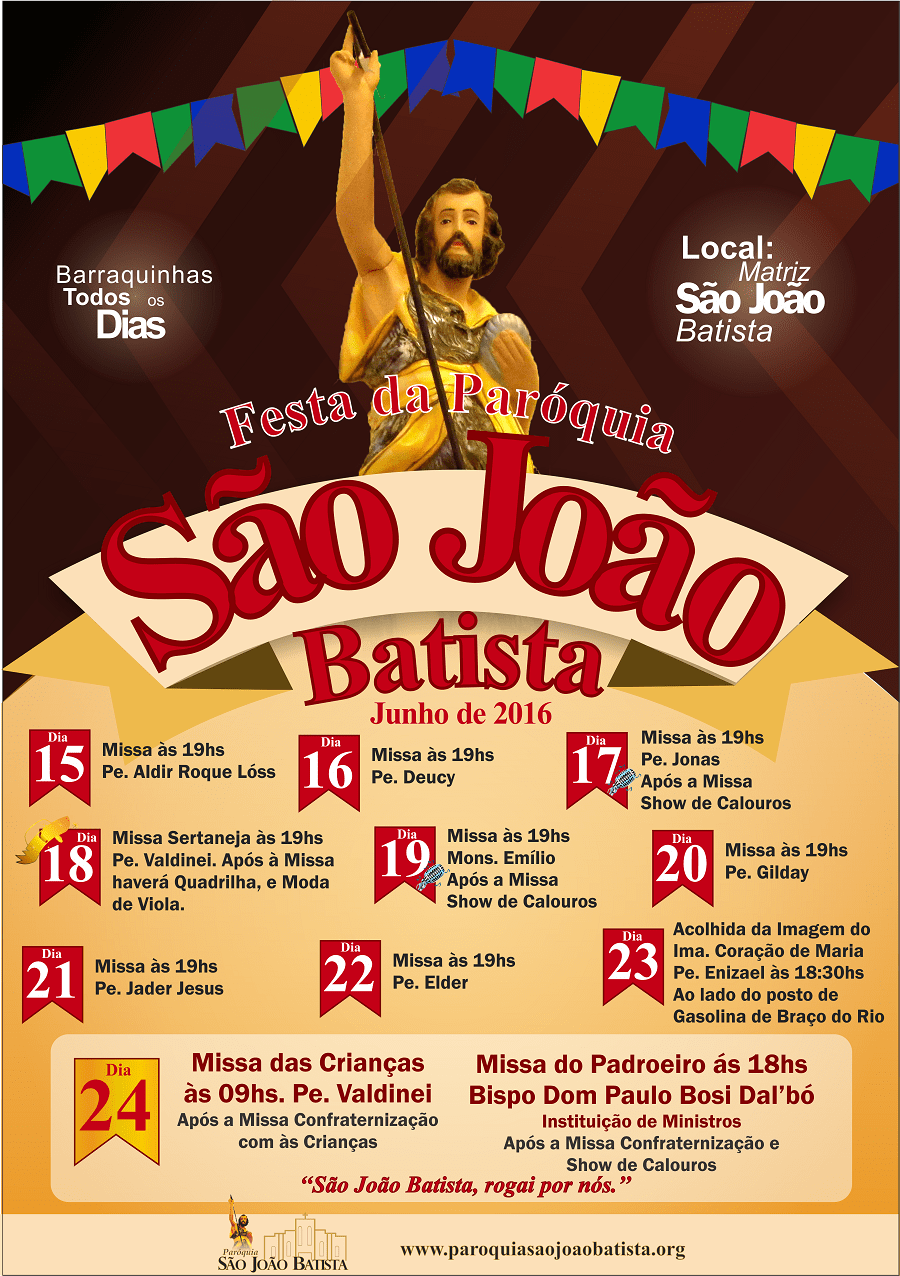 Programação da Festa da Paróquia São João Batista 2016