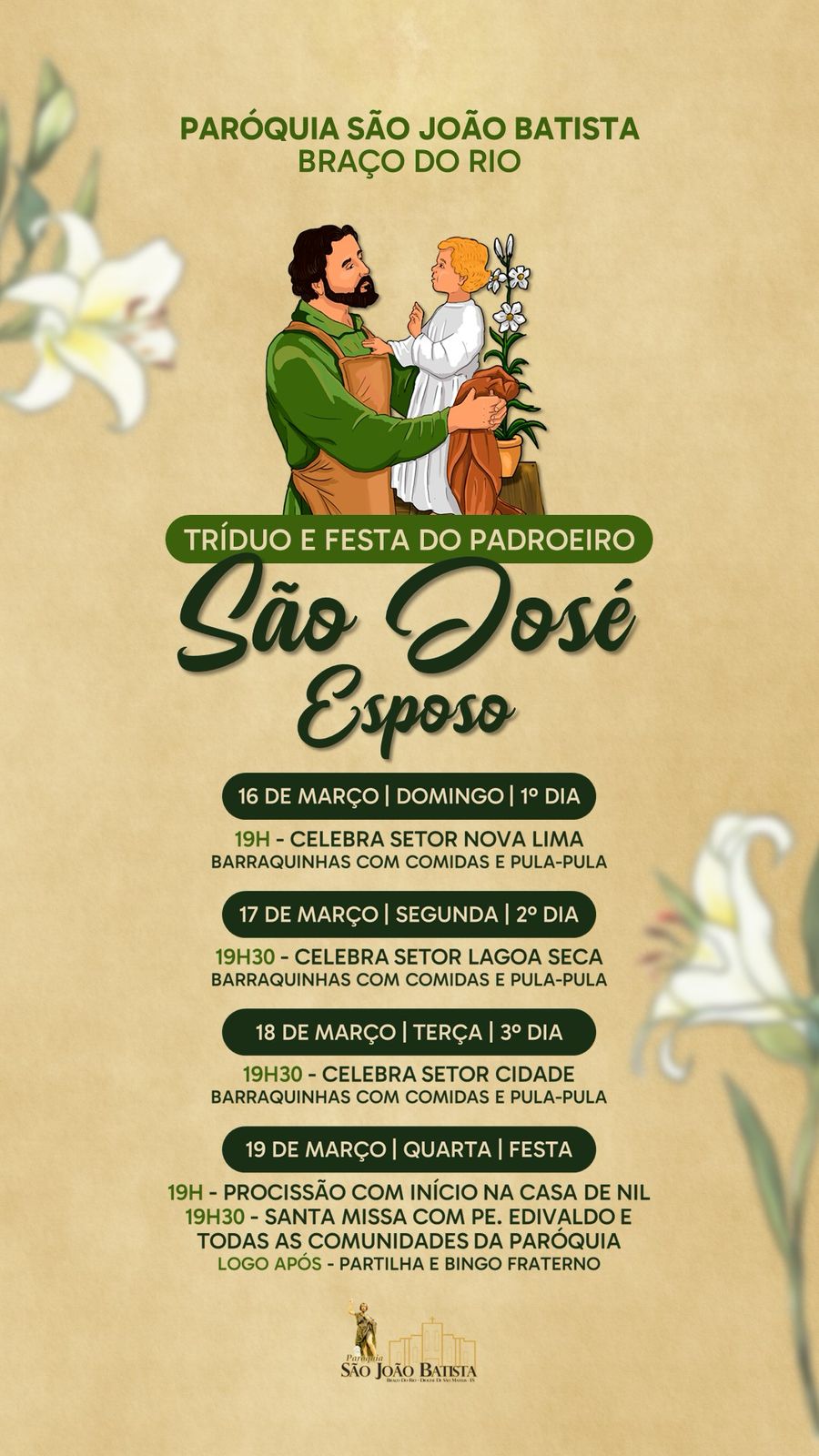 Programação do Tríduo e Festa do padroeiro São José Esposo 2025